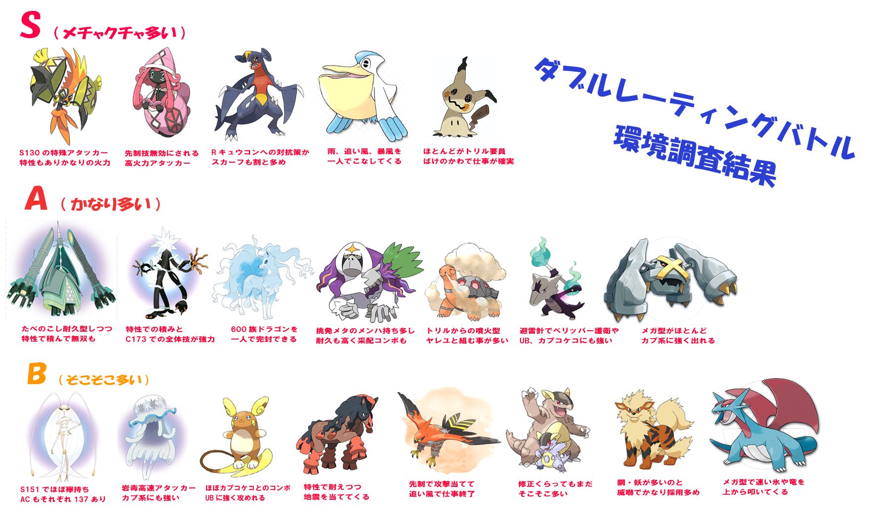 ボランチ ダブルバトル100戦して環境調査してきました レーティングこれから潜る人たちの参考になればと思います ポケモンサンムーン T Co Wng4vp8cv4 Twitter
